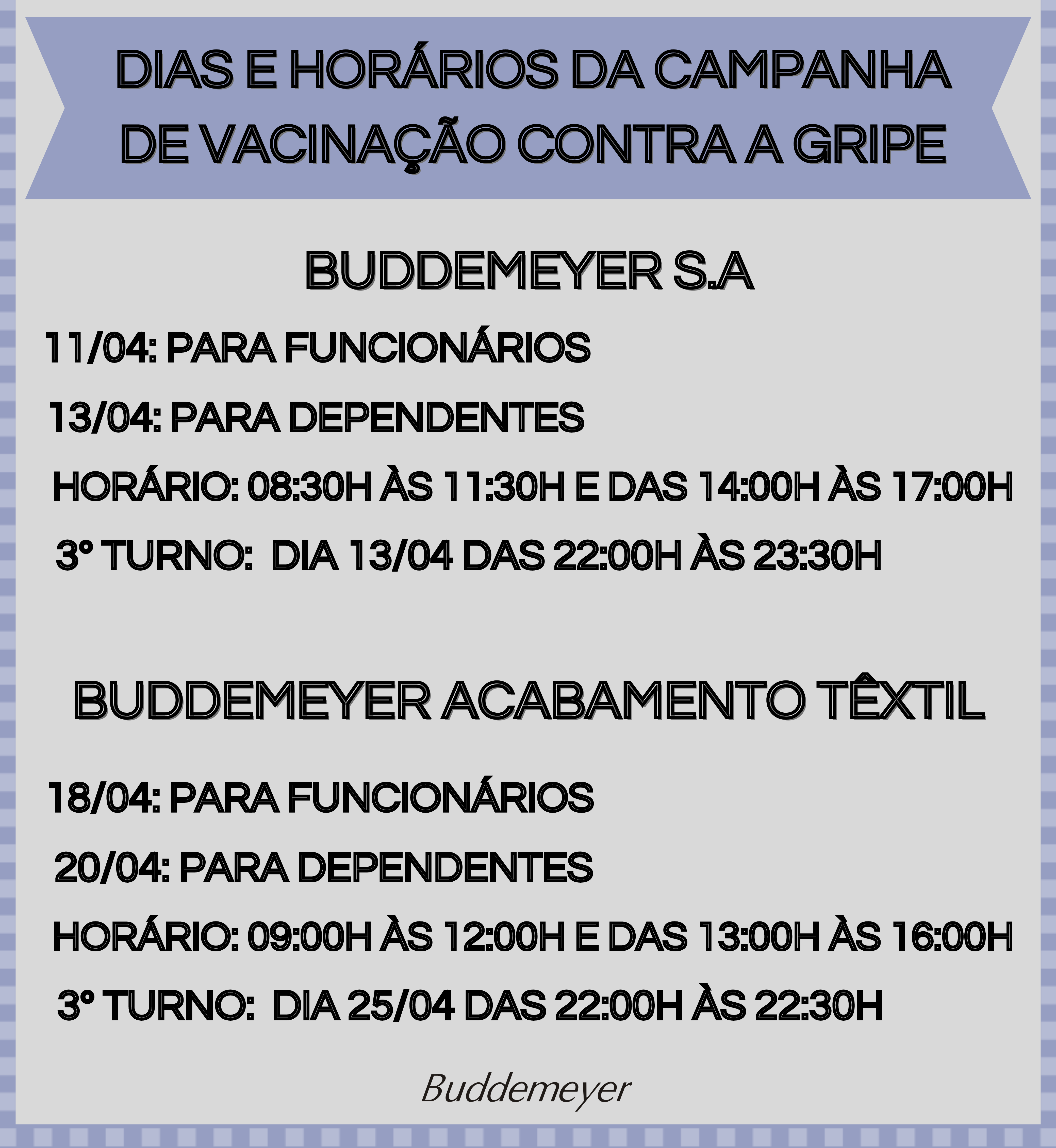 A Campanha de Vacinação Contra a Gripe está chegando. Preparamos um post com algumas dicas de prevenção e com as datas da CAMPANHA NA BUD. Clique no link e confira